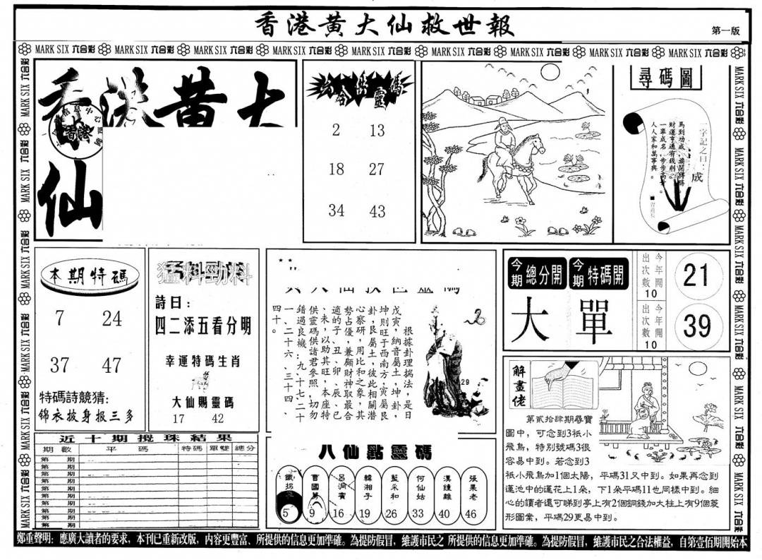 另版黄大仙灵码A