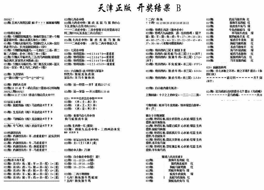 天津正版开奖结果B